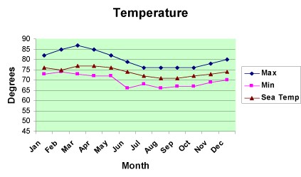 The trade winds slacken and the Intertropical Convergence Zone, the "climatic equator" that is usually located north of the geographic equator, shifts south toward the Galapagos. The slacking trade winds cause the westward flowing current to slow. These reduces the upwelling and allow warmer water to invade the region. The air warms and the inversion layer breaks down. This allows warm air to rise to the point where rain clouds form and daily afternoon showers occur. Even in this season, however, low elevations, particularly those in the rain shadow of highlands, receive only limited rain. Interestingly, the highlands receive more moisture from the garua than they do from the rain Typical water temperatures vary between the islands depending on which